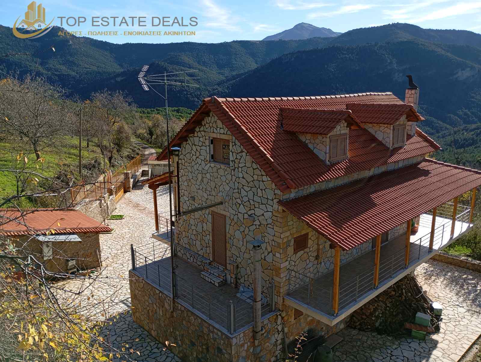 Στην χιονισμένη Ζήρια της ορεινής Κορινθίας στο χωριό Καρυά με υψόμετρο 1280 μέτρα που απέχει μόνο 5 λεπτά από τα χειμερινό προορισμό Τρίκαλα και περίπου 1,5 ώρα από την Αθήνα βρίσκεται μία υπέροχη Μονοκατοικία 120 τ.μ. με σοφίτα άλλα 60 τ.μ. φτιαγμένη το 2004 με πολύ μεράκι και υψηλής ποιότητας υλικά που παρέχει στους επισκέπτες της όλες τις ανέσεις όπως επικάλυψη πέτρας σε όλη την επιφάνεια της μονοκατοικίας ,περιμετρική πέτρινη μάντρα που ασφαλίζει όλο το οικόπεδο με ψηλά κάγκελα ασφαλείας ,πλακόστρωτο το μεγαλύτερο μέρος του οικοπέδου, πλήρης φωτισμός όλου του οικοπέδου με δυνατότητα αυτόματης ή χειροκίνητης ρύθμισης των φώτων μέσω ειδικής κονσόλας ,πέτρινη αποθήκη – γκαράζ ενός αυτοκινήτου με ράφια εργαλείων και καταψύκτες ,σκεπαστή ψησταριά – bbq ,αυτόνομη θέρμανση από λεβητοστάσιο πετρελαίου με ηλεκτρομπόιλερ ,υπαίθριος χώρος στάθμευσης τουλάχιστον 5 αυτοκινήτων ,περιφραγμένο περιβόλι ,σπίτια για μεγάλα σκυλιά με αυτόματη ταΐστρα -ποτίστρα, ηλιακός θερμοσίφωνας ,δορυφορική κεραία ,πόρτες ασφαλείας και παράθυρα ενισχυμένα αλουμινίου , όλα τα ταβάνια του σπιτιού καθώς και τα μπαλκόνια είναι σκεπασμένα με συμπαγή πανέμορφη ξυλεία ,συναγερμός, υδραυλικό εξωτερικό αναβατόριο από το ισόγειο προς τον 1ο όροφο, ατελείωτη -απίστευτη θέα ,πολλούς χώρους γιατί αποτελείται από ισόγειο 60 τ.μ. που επικοινωνεί μέσω εσωτερικής σκάλας με τον Ά όροφο και με άλλη εσωτερική σκάλα επικοινωνεί με την σοφίτα 60 τ.μ. με μεγάλα περιμετρικά μπαλκόνια και θέα που κόβει την ανάσα στους επισκέπτες .Το ισόγειο αποτελείται από μεγάλο σαλόνι-καθιστικό-κρεβατοκάμαρα με περιμετρικές μπαλκονόπορτες μπάνιο και ειδικό ανεξάρτητο χώρο δωματίου για πλυντήριο -λεβητοστάσιο -ηλεκτρομπόιλερ. Μέσω εξωτερικού κλιμακοστασίου ανεβαίνεις στον 1ο όροφο ενώ μπορείς να πας και με το εσωτερικό κλιμακοστάσιο όπου συναντάς πόρτα ασφαλείας ,τζάκι ,τραπεζαρία-σαλόνι -κουζίνα- μπαλκονόπορτες ξυλόσομπα ,κουζίνα ,υπνοδωμάτιο, μπάνιο και μεγάλα μπαλκόνια ολόγυρα με ακαταμάχητη θέα .Στην σοφίτα ανεβαίνεις μέσω εσωτερικού κλιμακοστασίου και συναντάς ένα μεγάλο δωμάτιο με υπέροχο μπαλκόνι κατάλληλο για playroom όπου κυριαρχεί παντού το ξύλο κι ένα μεγάλο υπνοδωμάτιο με παράθυρα που το φωτίζουν με την απίστευτη θέα από τα μαγευτικά χρώματα της φύσης .Αν ενδιαφέρεστε για ένα έτοιμο πολυτελείας εξοχικό σε ιδανικό χειμερινό προορισμό κοντά στην Αθήνα μην διστάσετε να επικοινωνήσετε με το γραφείο μας στο 6907646500 να σας στείλουμε πιο πολλές φωτογραφίες και να κανονίσουμε ραντεβού ώστε να δείτε από κοντά αυτή την υπέροχη μονοκατοικία η οποία πωλείται ενδεικτικά ούτε στο μισό της κατασκευαστικής της αξίας .Είναι μια πραγματικά αξιόλογη ευκαιρία !!!
