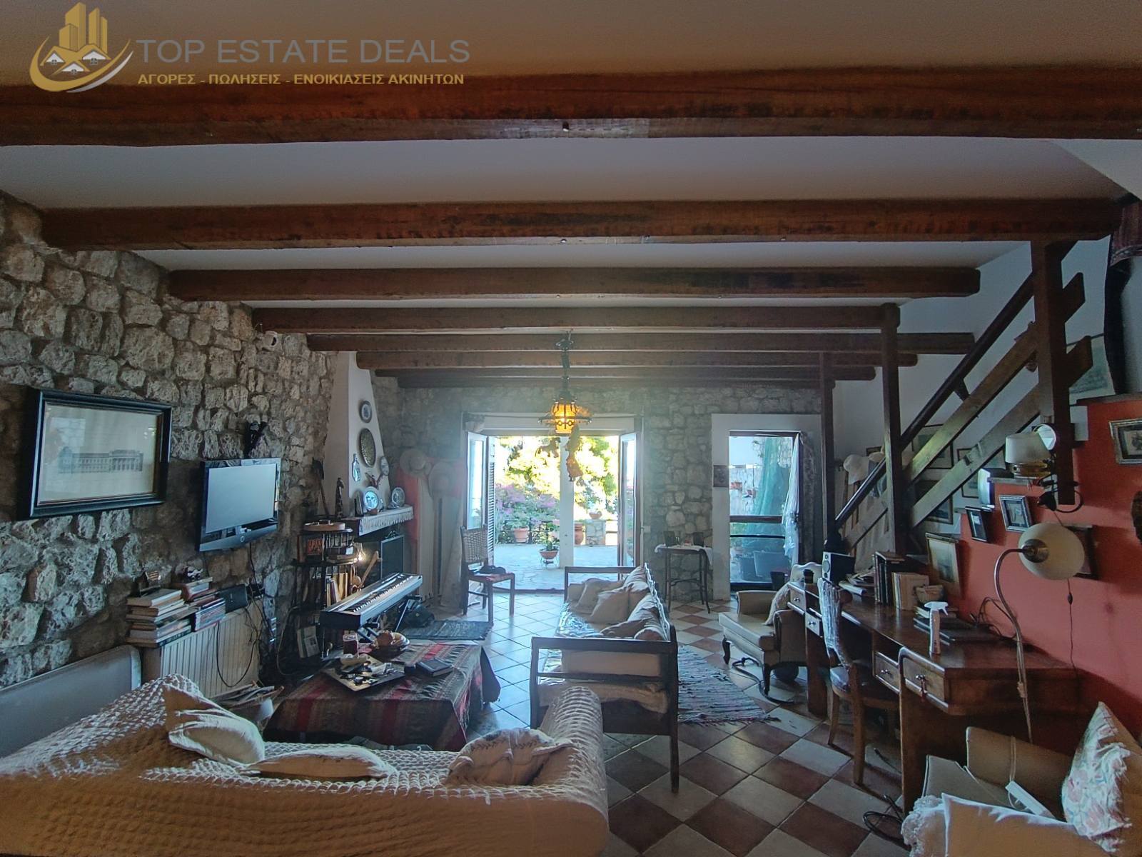 Πωλείται επιπλωμένη εξαιρετική παραδοσιακή πετρόκτιστη διώροφη μονοκατοικία 130 τ.μ. μέσα σε οικόπεδο 820 μέτρων περίπου στην θέση Καραμούζι στο Δερβένι Κορινθίας, με πανοραμική θέα στον Κορινθιακό Κόλπο. Εντός συγκροτήματος τριών κατοικιών, κατασκευής 2002. Πλήρως επιπλωμένο, με παραδοσιακά έπιπλα και χαλιά από όλα τα μέρη της Ελλάδος. ( μοναστηριακή τραπεζαρία , καρέκλες χειροποίητες από ινδική κάνναβη , σκυριανά ,αντίκες ,χαλιά κτλ. ) Αποτελείται από 2 επίπεδα τα οποία ζεσταίνονται με λεβητοστάσιο πετρελαίου είτε με αντλία θερμότητας είτε με τα 2 τζάκια ενώ ψύχονται με κλιματιστικά σε όλους τους χώρους .